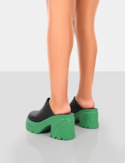 Sandi Green PU Chunky Sole Block Heeled Mules