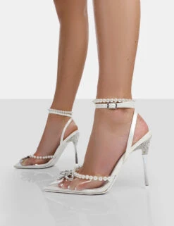 Pearl Bow Clear Perspex Wrap Around Pointed Toe Stiletto Court Heels
