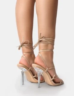 Runway Nude Perspex Wrap Around Barely There Square Toe Heels
