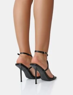 Amy Black Strappy Barely There Square Toe Stiletto Heels