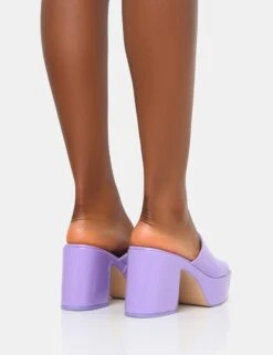 Ariel Lilac Patent Mule Chunky Mid Platform Heels