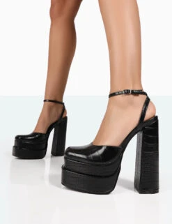 Moonchild Black Croc Closed Toe Statement Platform Block Heels