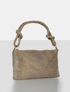 The Ingrid Gold Diamante Zip Up Knot Detail Mini Shoulder Bag