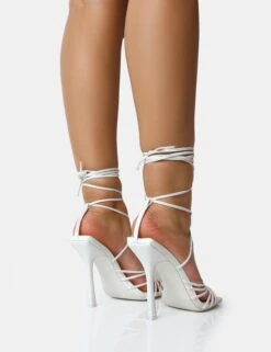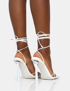 Asscher White Pearl Detail Diamante Broach Clear Perspex Wrap Around Pointed Court Stiletto Heels