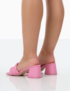 Play Nice Pink PU Woven Square Toe Block Mid Heeled Sandals