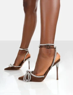 Midnight Clear Wide Fit Wrap Around Diamante Bow Pointed Toe High Heel