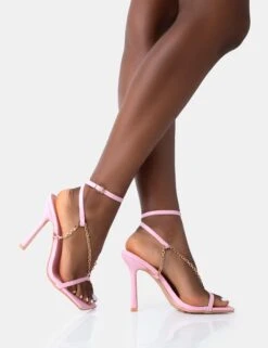 Catwalk Baby Pink PU Chain Strappy Square Toe Stiletto Heels