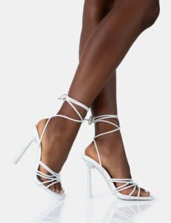 Glow Up White PU Knotted Strappy Lace Up Square Toe Stiletto Heels