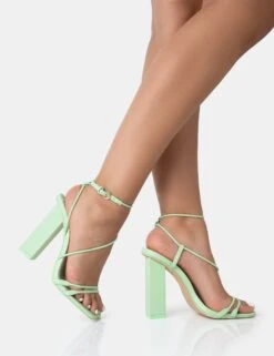 Marley Mint Green Pu Strappy Barely There Square Toe Block Heels