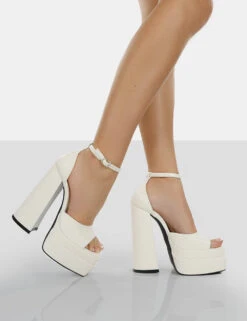 Mercy Ecru Pu Strappy Square Toe Platform High Block Heels