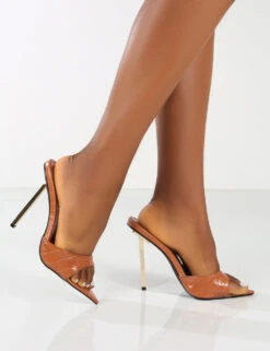 Powerful features a gold metallic stiletto heel and pointed toe. These shoes are sure to add glam to any outfit.