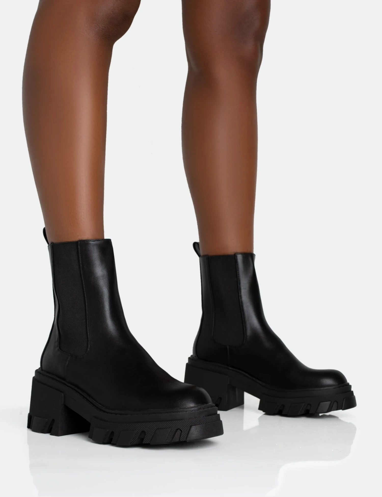 Don’t settle for boring – these Astro Wide Fit Black Pu Elasticated Ankle Detail Chunky Sole Ankle Heeled Boots will instantly amp up any outfit! The classic, yet edgy design makes them the perfect match for everything in your wardrobe. Ready for a night out with the girls? We gotcha!