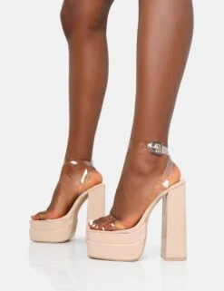 CALLA-fornia is calling – Featuring Calla in nude, the barely there style with perspex straps on an extreme platform block heel.
