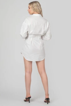 The perfect night out shirt dress in white featuring a flattering corset waist detail.
