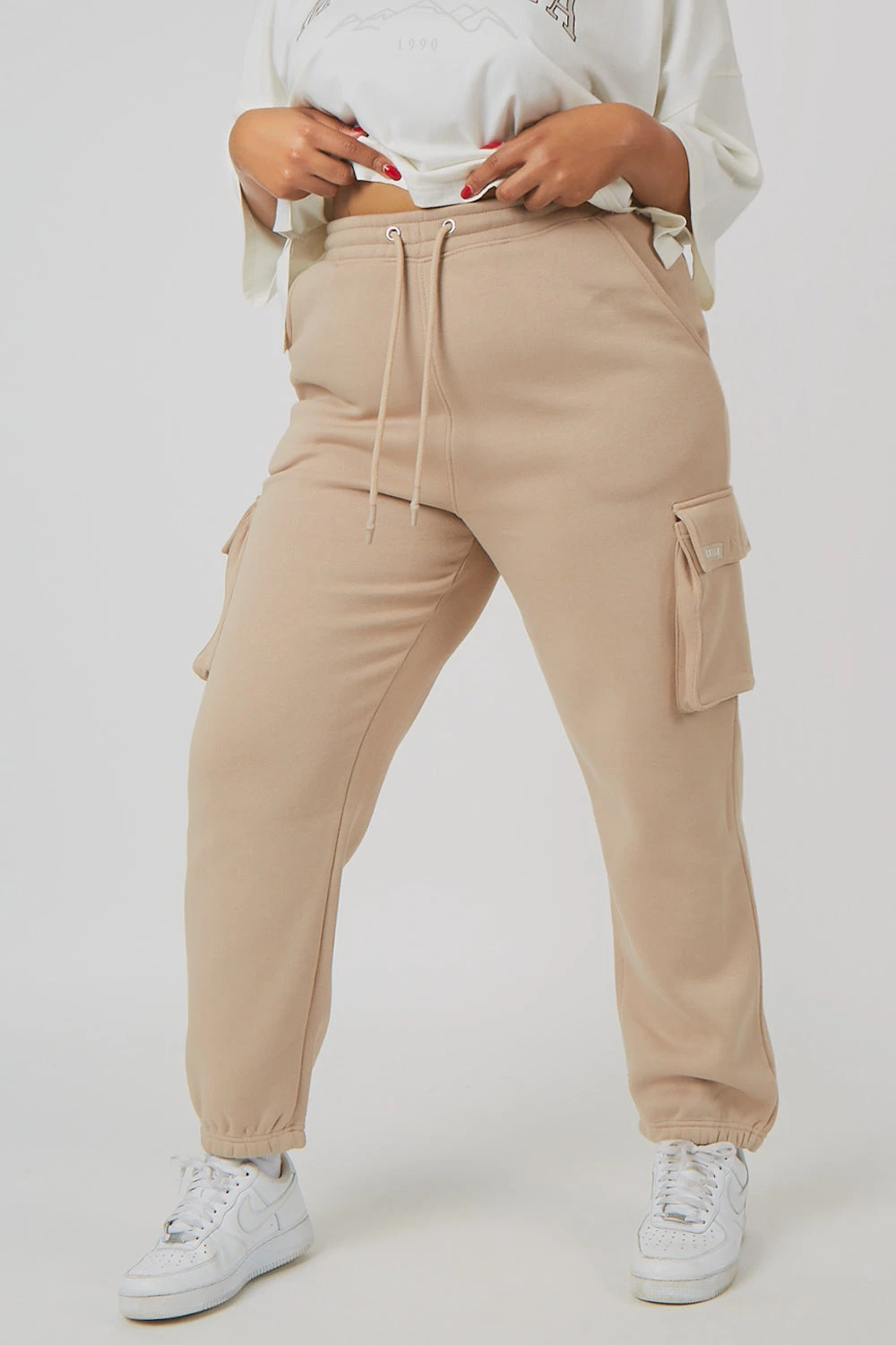 Light taupe cargo style joggers with pockets and elasticated cuffs