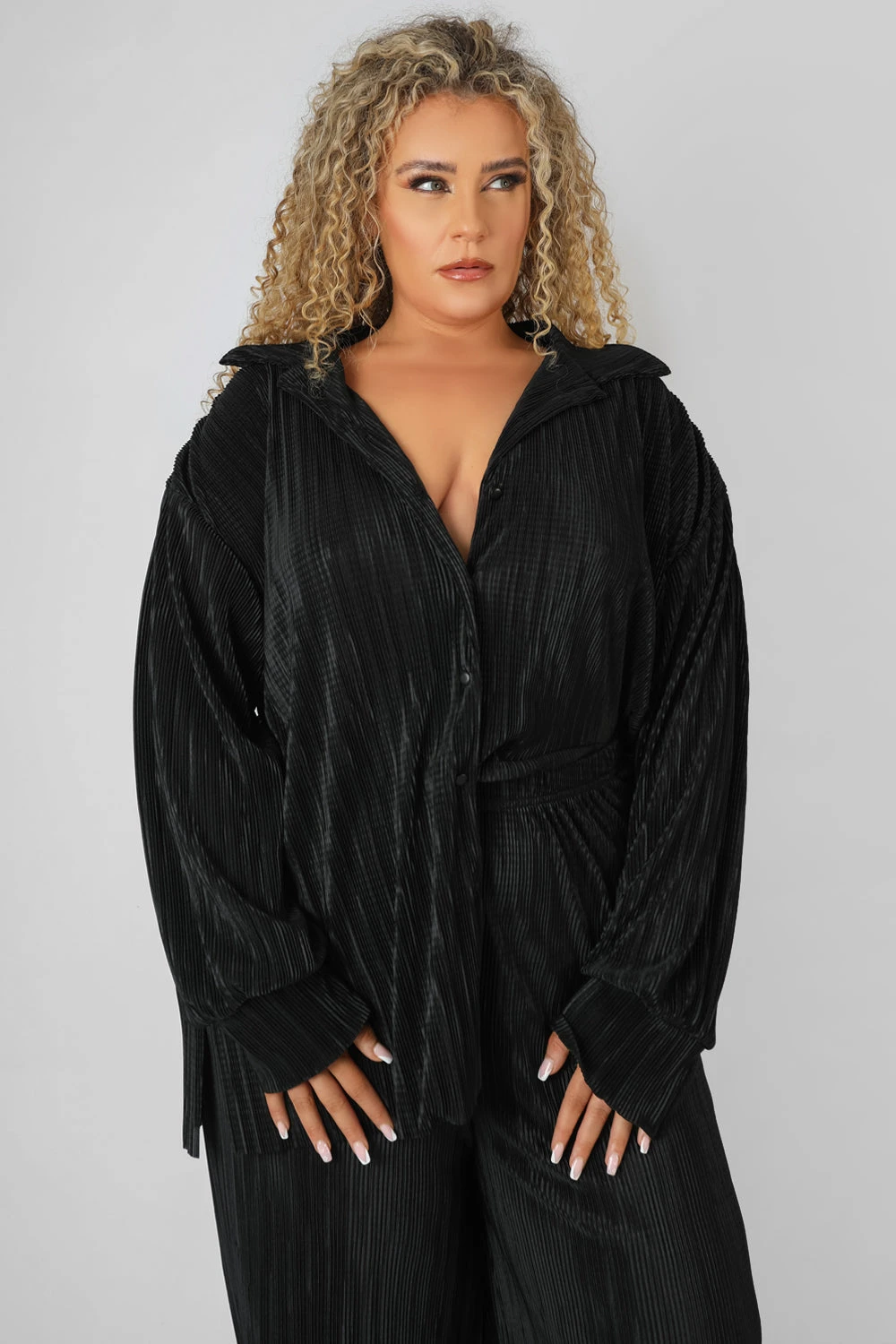 AN OVERSIZED FIT BUTTTON UP PLISSE SHIRT IN BLACK.Â