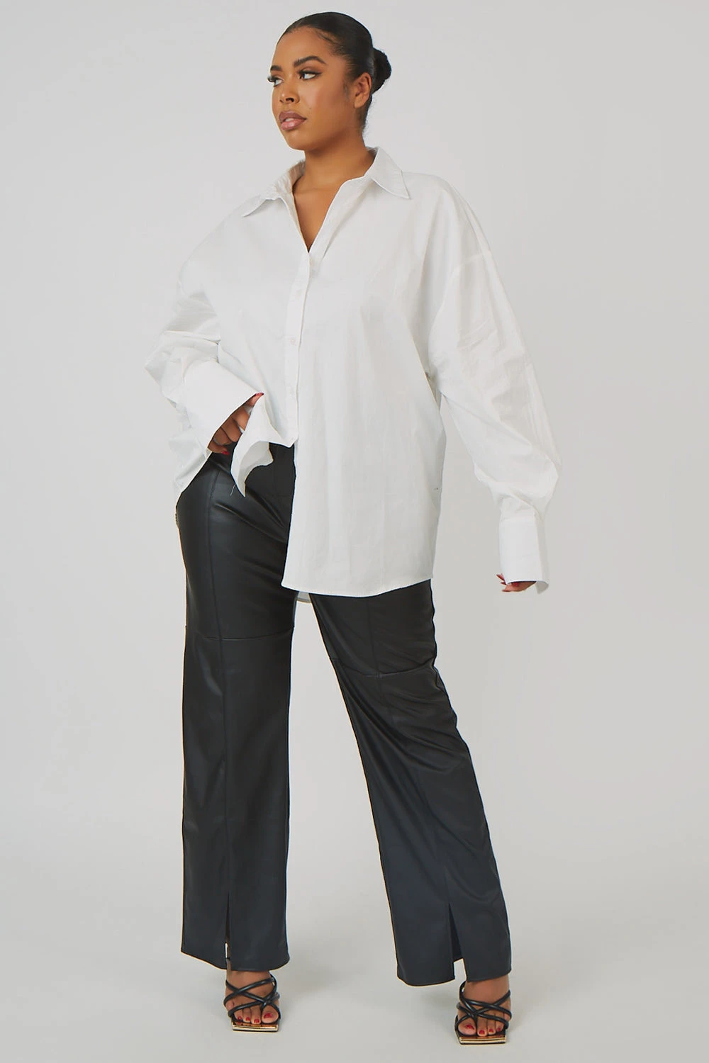 A must have updated basic for this Autumn with this white oversized fit shirt in poplin.