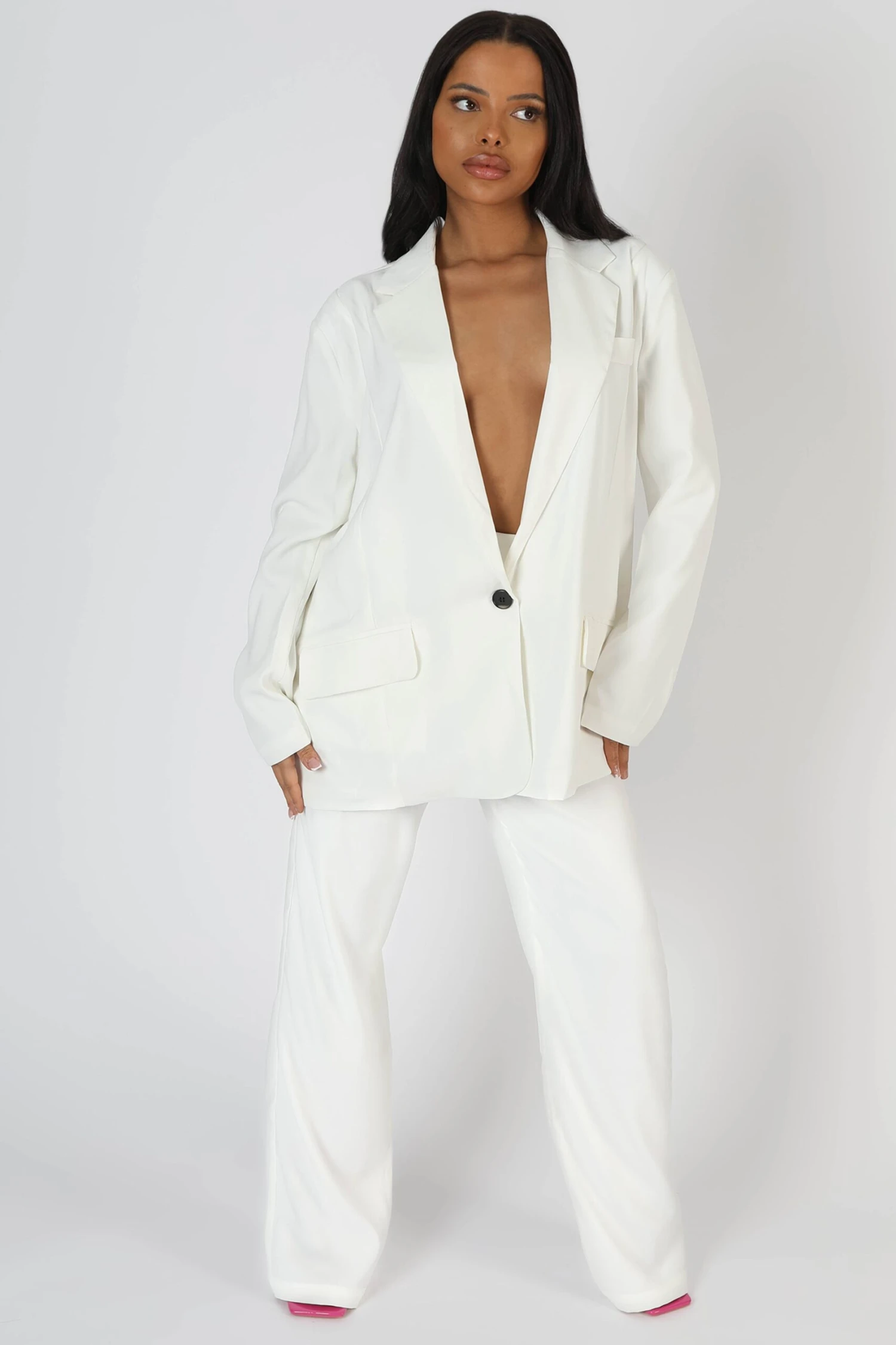 OVERSIZED FIT DAD STYLE TAILORED TROUSERS WHITE. PAIR WITH THE DAD BLAZER IN WHITE FOR THE ULTIMATE SET.