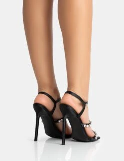 Introducing Evia Black Satin Pearl Barely There Square Toe Stiletto Heels! These saucy shoes will be the envy of any room and will undoubtedly have you sashaying down the street like Carrie Bradshaw herself. Get ready to g.a.g. when you step out in these statement shoes!