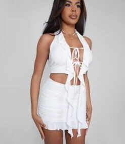 It’s time to get frilly and flirty! Our Frill Detail Tie Front Top is the perfect top for a night out with the gals. With an adorable tie at the front, you’ll look chic and stylish, and the matching skirt completes the look. Who said you can’t go out and have a little fun?