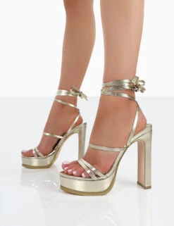 You’ll be shouting GIMME GIMME when you meet your new faves, Gimme Gimme! A stunning pair of gold lace up heels in the most gorgeous iridescent material. Every girl needs a pair of statement block heels in their 2022 shoedrobe and it’s safe to say that we NEED this style in every colour! We’re teaming these womens heels with a black off the shoulder jumpsuit for a must-have Birthday ready look…