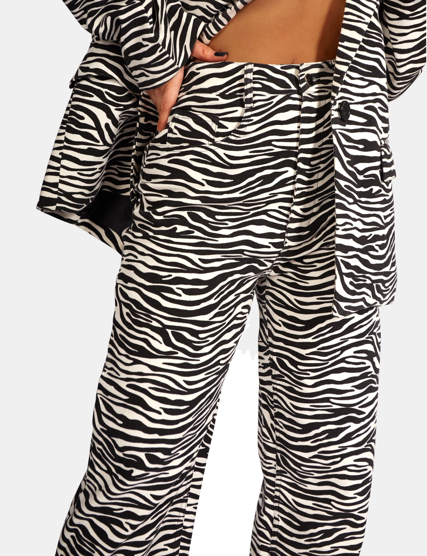 Make a statement with these high waisted, wide leg trousers in a zebra print. Wear with the matching blazer for the ultimate outfit
