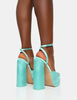 Influence Red Croc Patent Pu Square Toe Block High Heels