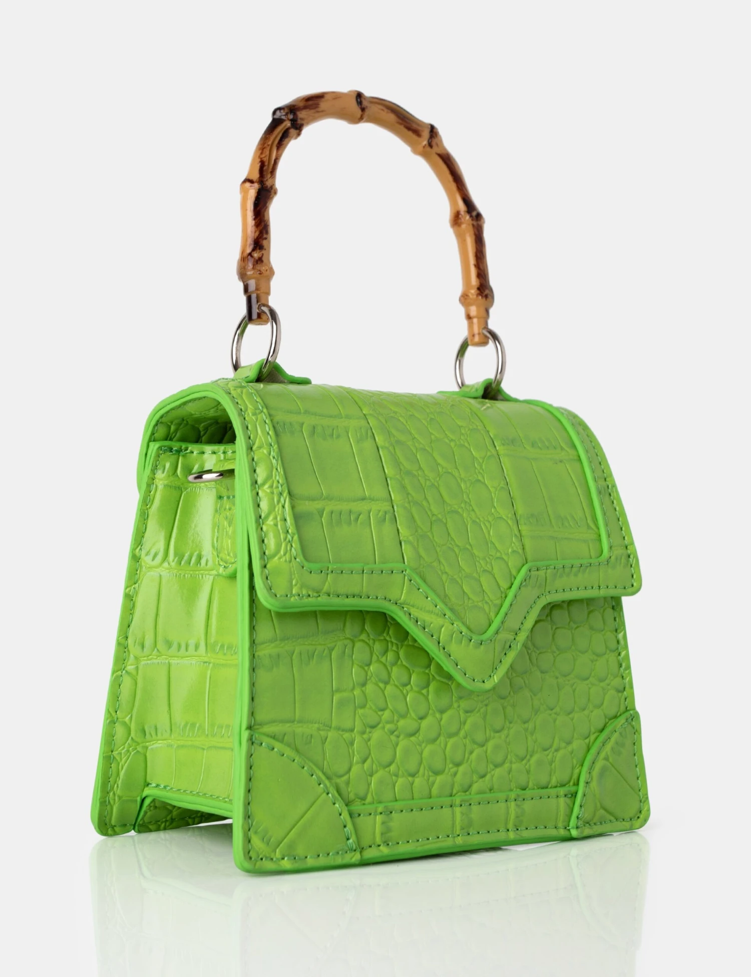 Slay the summer in style with the Jessica Apple Green Bamboo Top Handle Croc Mini Bag! This chic mini bag is the perfect mix of classy and modern. Take it anywhere to complete your look with an ultimate statement of fashion.
