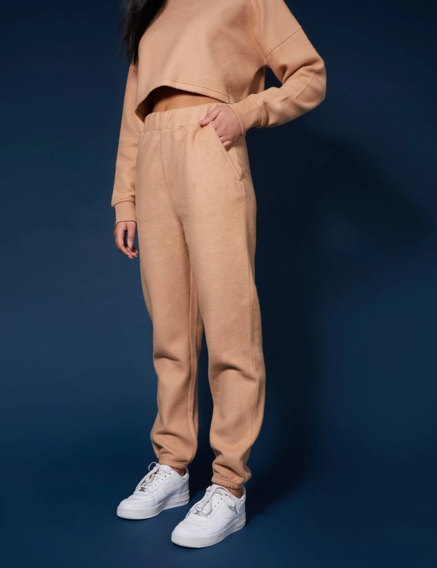 OVERSIZED FIT HIGH WAISTED 90S STYLE JOGGERS IN A FLUFFY CAMEL MATERIAL.Â