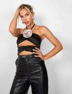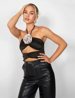 Unleash your inner Carrie in this Kaiia Satin Halterneck Body! With a removeable corsage accessory, you can bring the fun and fantasy of Sex and the City into your wardrobe. Feel like your favorite fashion icon and experience the luxury of satin with this black body. Get ready for the ultimate night in!
