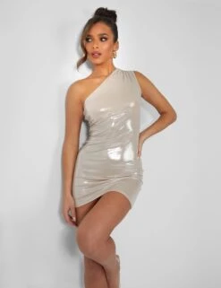 Introducing the new era of Public Desire! Step into our fantasy in bold metallics, sci fi sexy cut out pieces and vibrant prints. This eye catching dress featuring a one shoulder ruched, metallic finish, figure hugging in all the right places. Guaranteed make you the main character of any occasion. Be ready to be main character vibe with this stunning piece. Here at PD HQ we want you to feel your best inside and out. Our clothing is here to take you there!