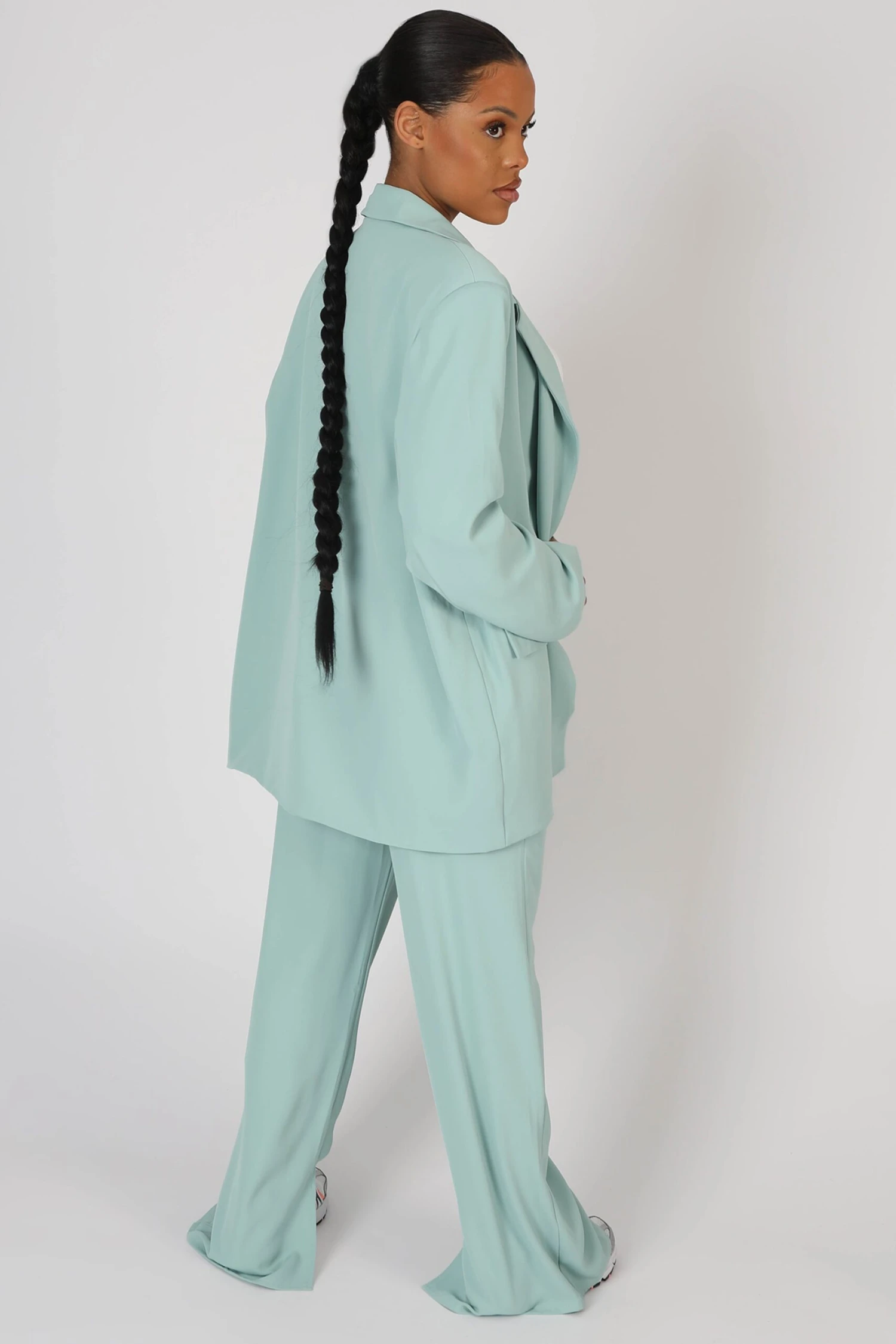 AN OVERSIZED FIT DAD STYLE BLAZER IN PEPPERMINT . PAIR WITH THE SPLIT DETAIL HIGH WAISTED DAD TROUSER PEPPERMINT FOR THE ULTIMATE SUIT SET.
