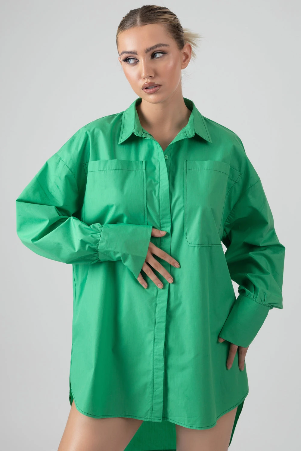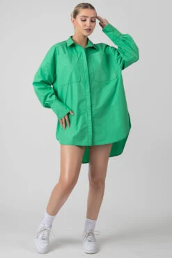 A must have updated basic for this Autumn with this green oversized fit shirt dress in poplin.