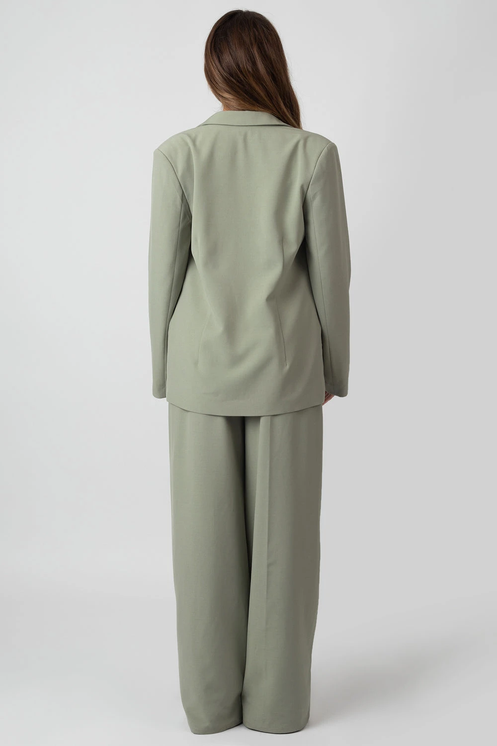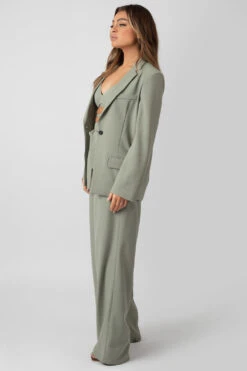 Update your suit with this obi belted blazer featuring a slighlty oversized fit and front pockets in sage.