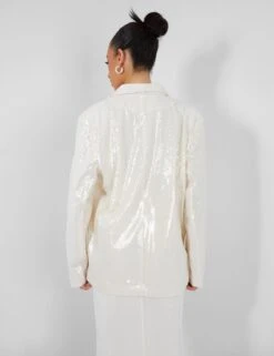 PREMIUM SEQUIN OVERSIZED BLAZER ECRU