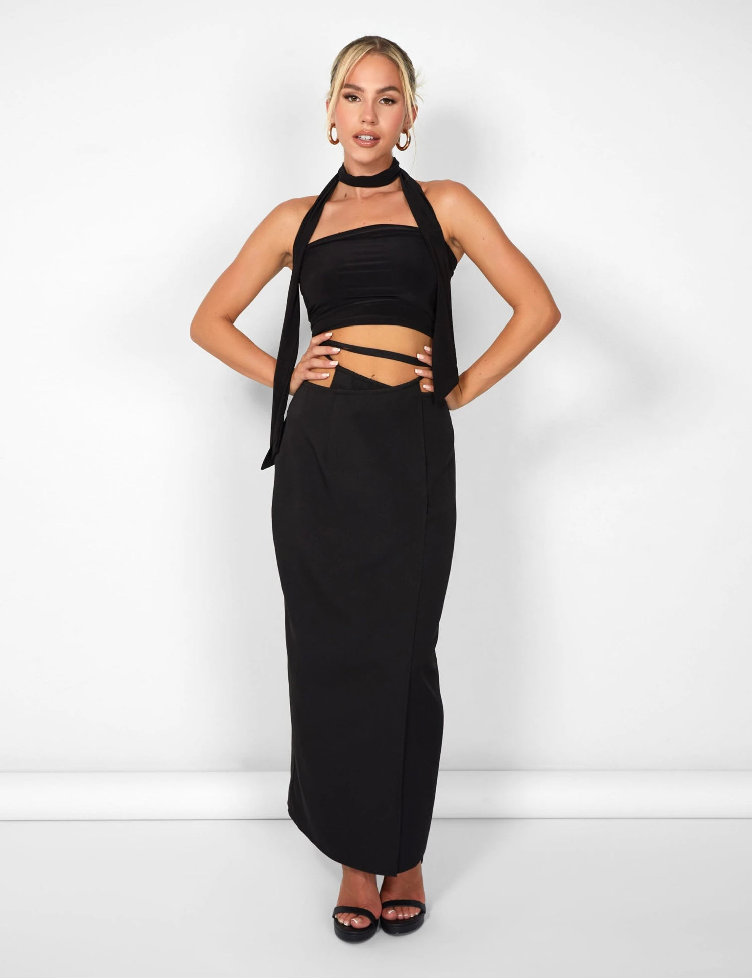 This Kaiia Wrap Tie Side Maxi Skirt in Black is the perfect way to up your style game for any occasion! This skirt is incredibly versatile – dress it up for a glam night out, or dress it down for a low-key daytime look. Put the ultimate AW slay in your wardrobe!