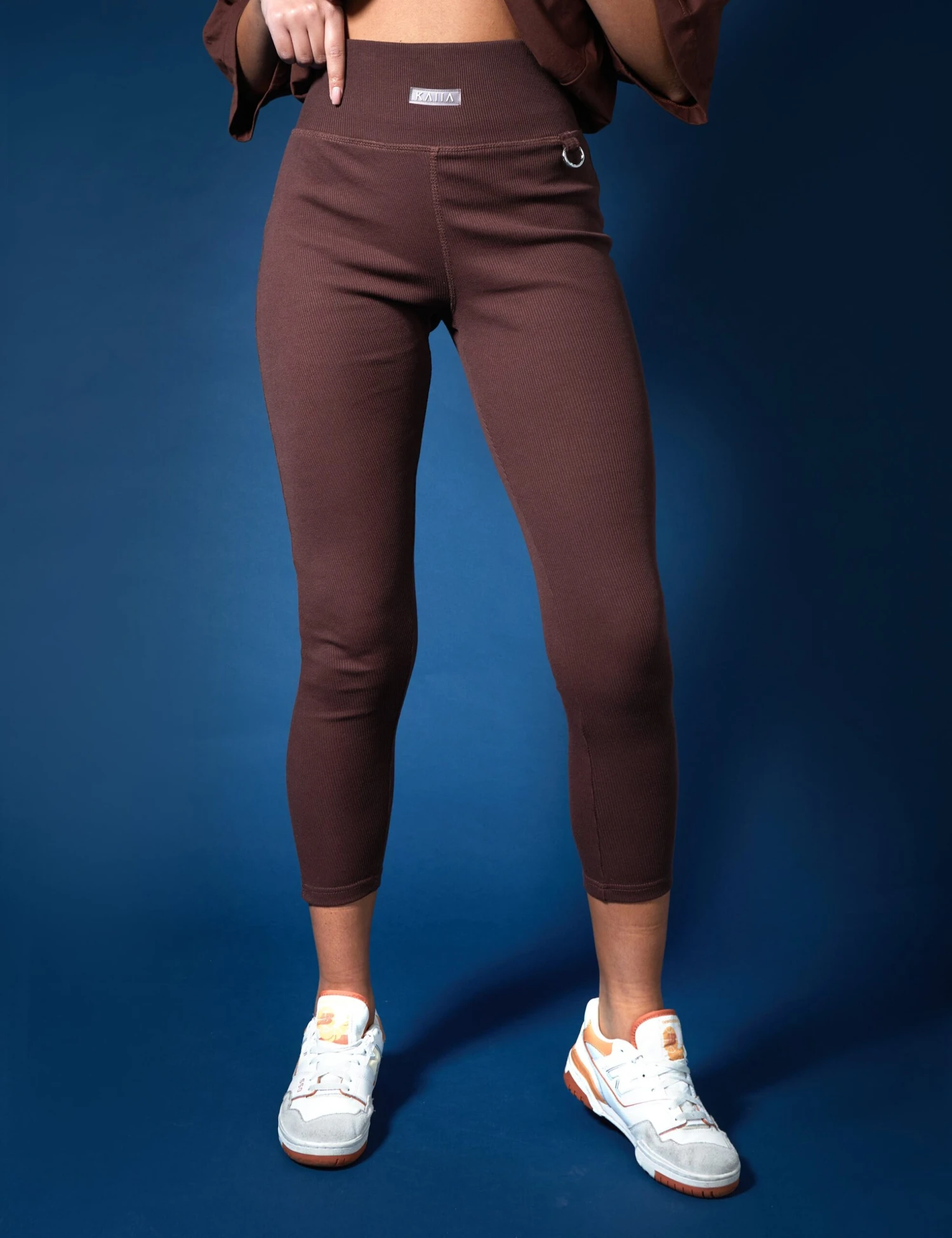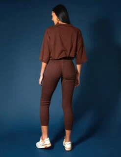 HIGH WAISTED RIBBED CHOCOLATE LEGGINGS.