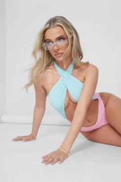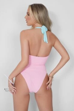 Look like the beach babe you were made to be in this Scrunch Two Tone Wrap Swimsuit! Look hot and ready for anything with the perfect combination of pink and mint. Put on this swimsuit and be ready to live your Malibu beach fantasy – you’ll slay it, no doubt!