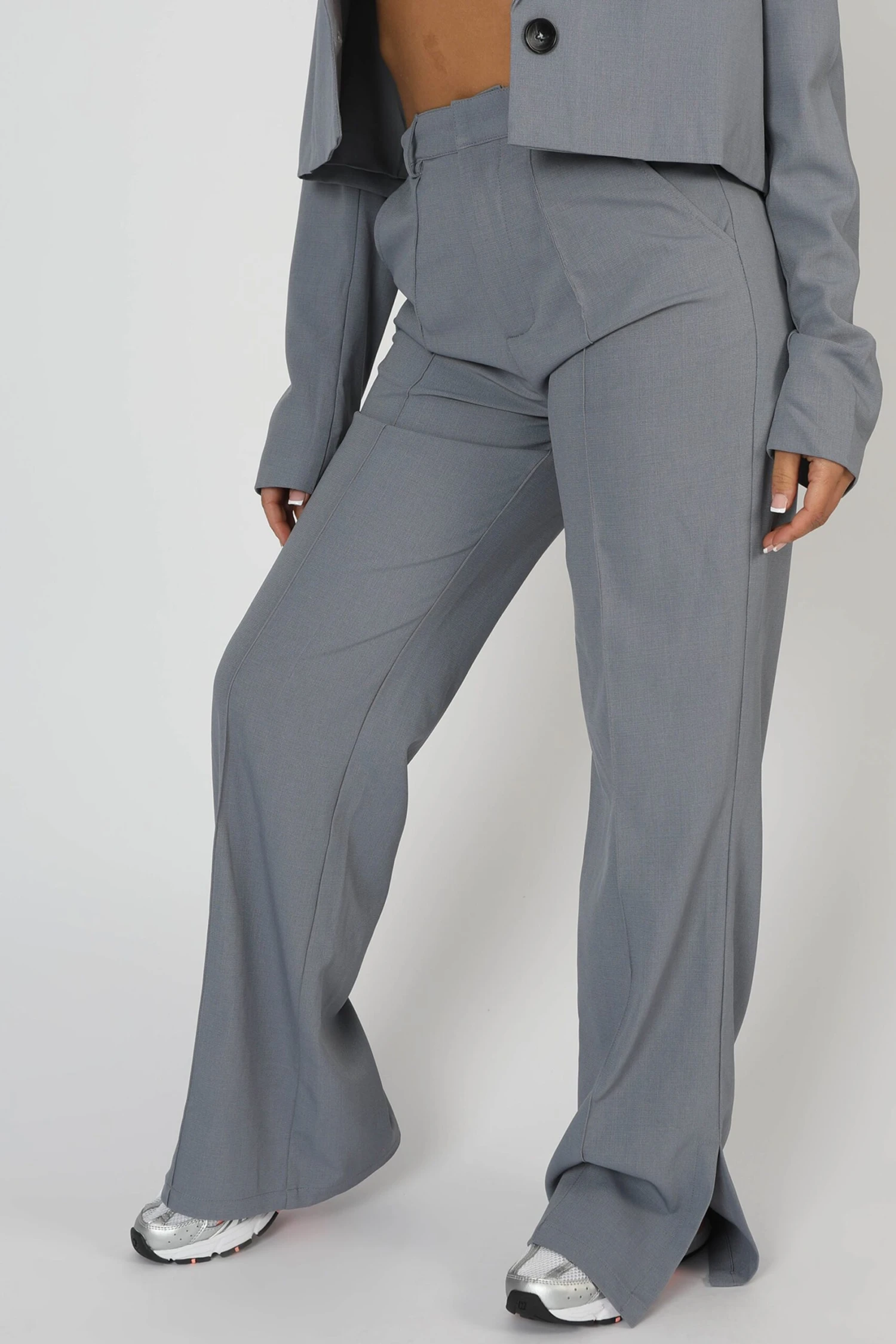 Upgrade your basics with these stylish seam detail relaxed fit trousers in grey. Pairs perfectly with the boxy crop blazer.