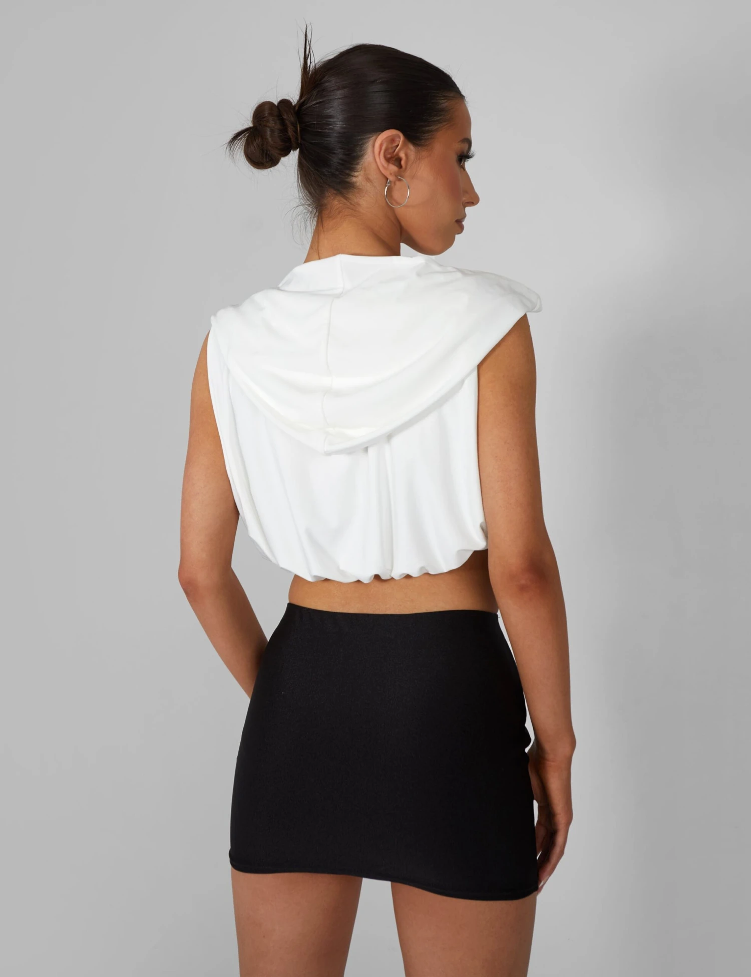 Introducing the new era of Public Desire! Step into our fantasy in bold metallics, sci fi sexy cut out pieces and vibrant prints. Introducing the perfect addition to your wardrobe for achieving that effortlessly chic look – the Sleeveless Wrap Front Top With Hood in Ivory. The sleeveless style is perfect for warmer days or layering, and the added hood provides an extra touch of style and functionality. This top will make you feel like you are channeling your inner Kylie.