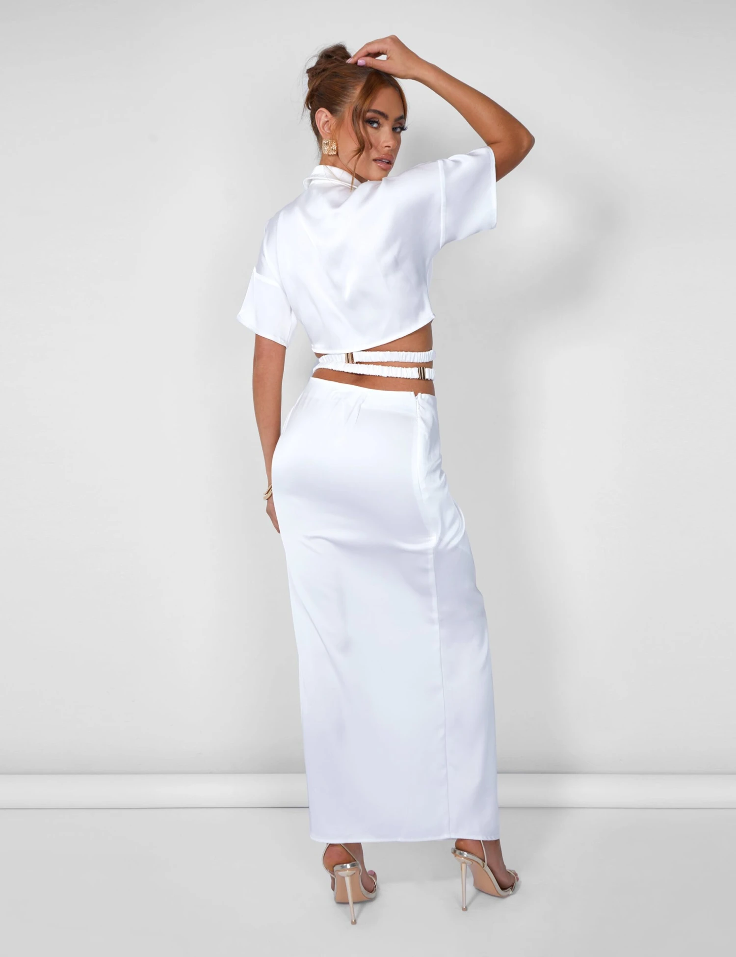 Make a statement in this Strappy Cropped Satin Shirt Cream! It’s the perfect addition to your summer wardrobe. Show off your vibe – pair it with some high waisted faves and don’t be afraid to let your style shine!