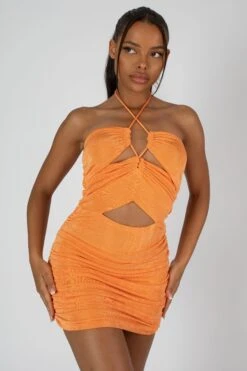 Be the first to review “Strappy Slinky Short Ruched Dress Orange” Cancel reply