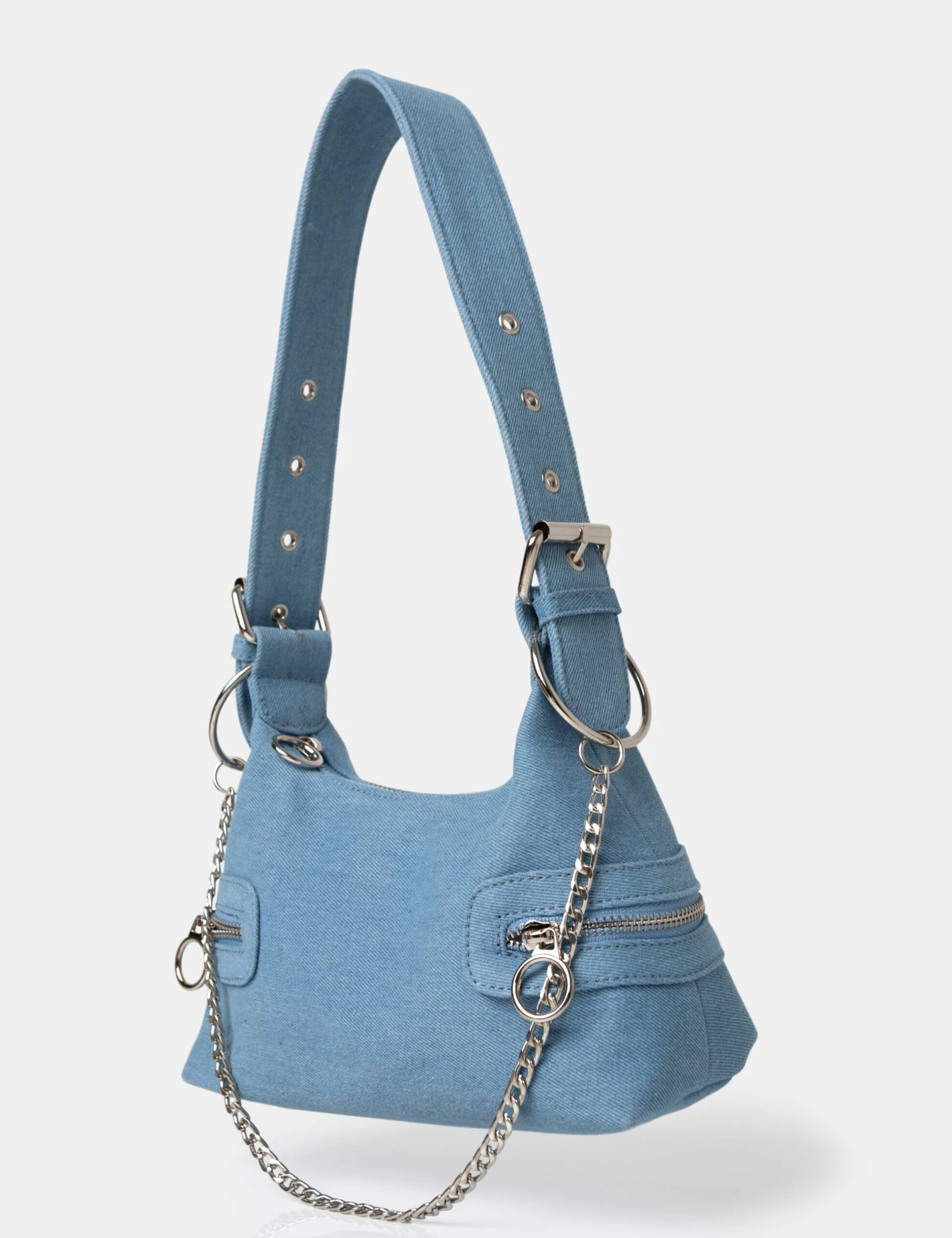 Ready to welcome your new go to summer bag? Say hello to THE CHAIN. the NEED and WANTS of every girls and guys accessory wardrobe. The Chain shoulder mini bag in Denim is on PD’s most wanted list.Â