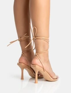 This season, get your style on point with our Unruly Nude Pu Perspex Strappy Lace Up Pointed Toe Stiletto Heels! Take your love of classic heels to a whole new level of sexiness with this unique take on a timeless look – you’ll be looking fierce and feeling fabulous!