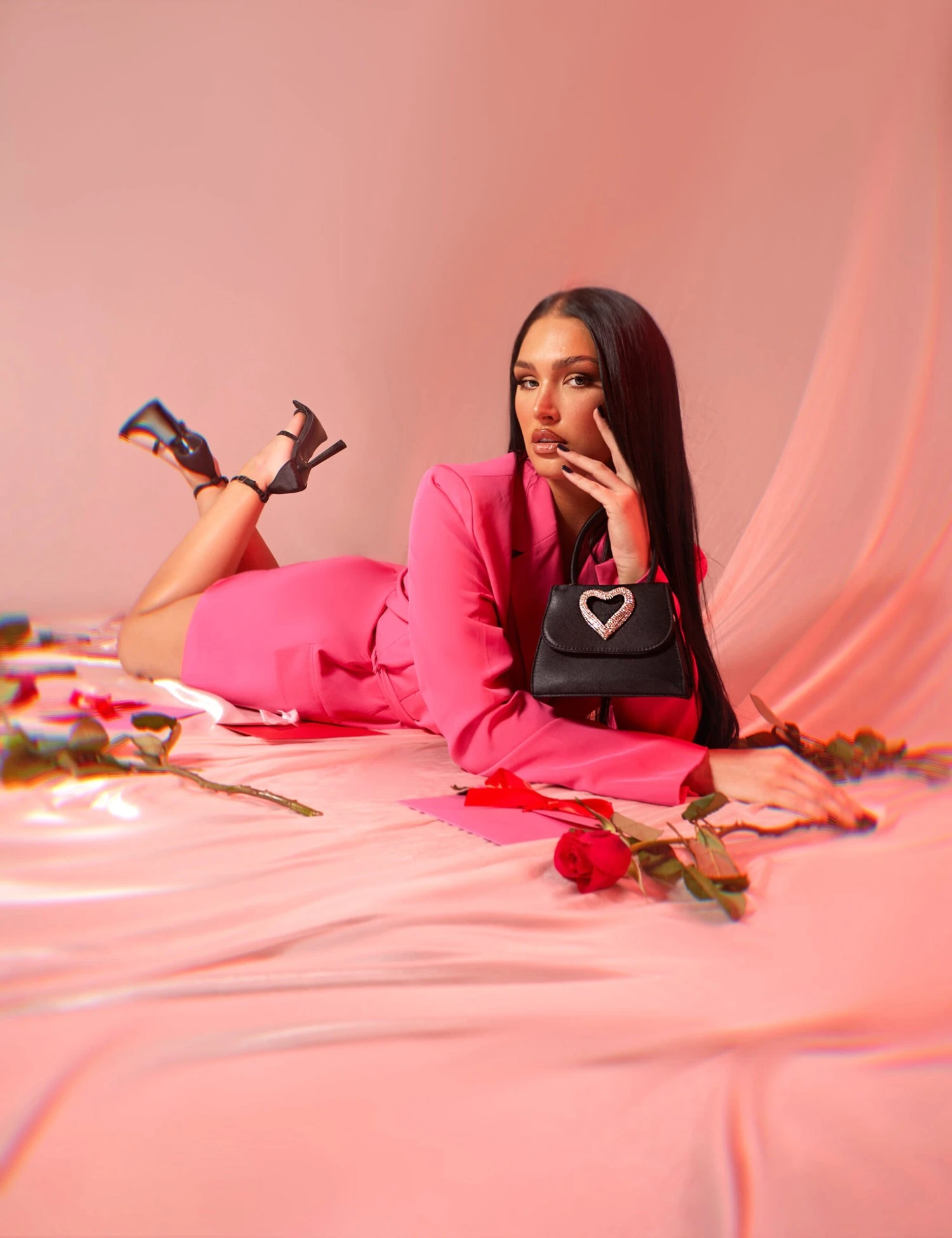 OUR ICONIC TIE WAIST MINI BLAZER DRESS NOW IN PINK.