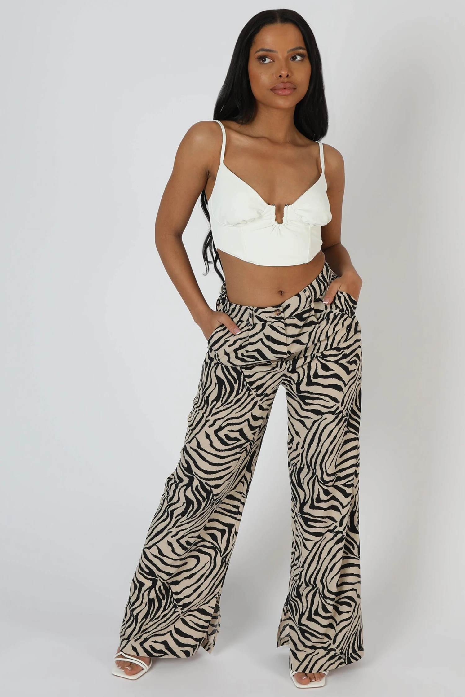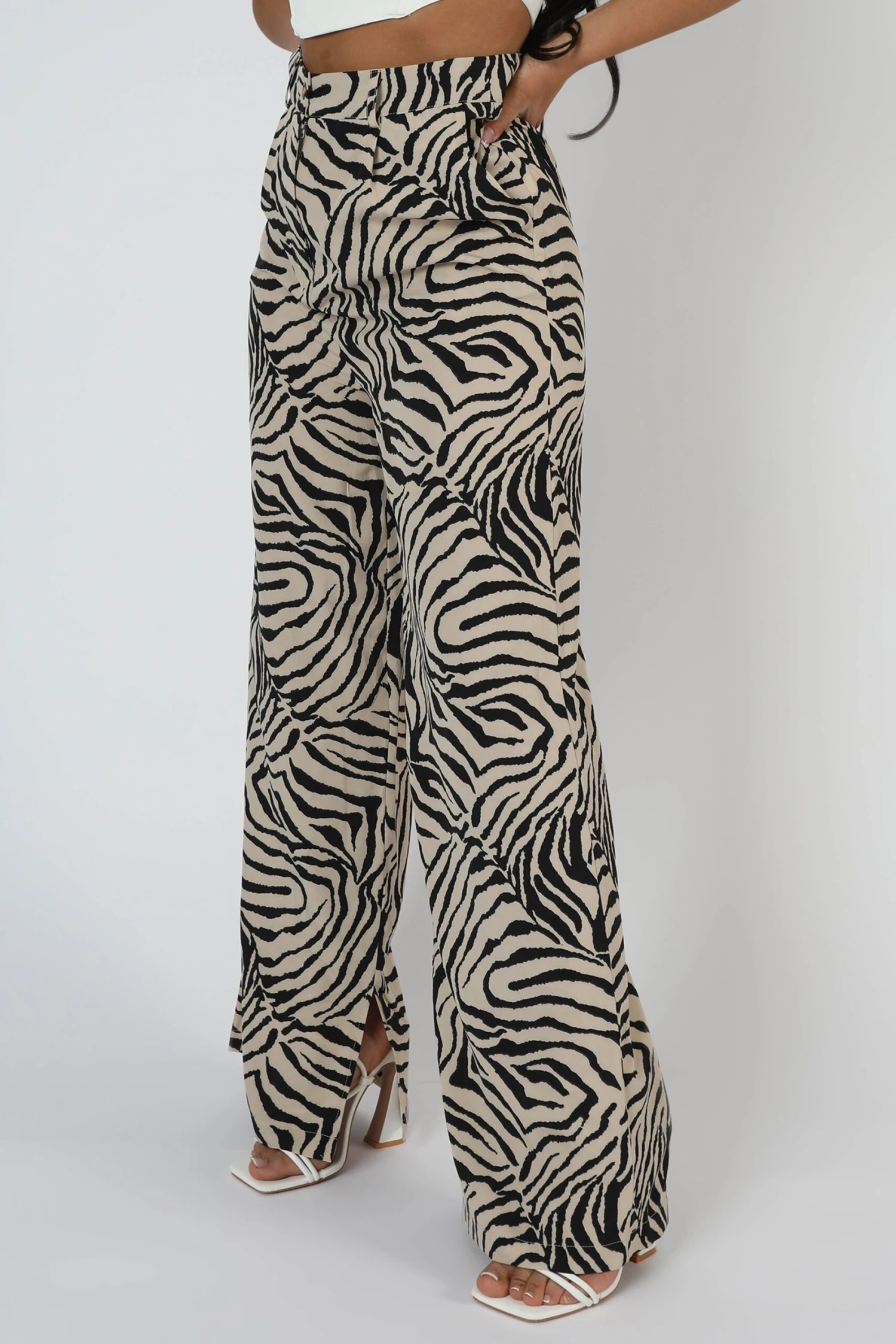 HIGH WAISTED TAILORED TROUSERS IN A STONE ZEBRA PRINT